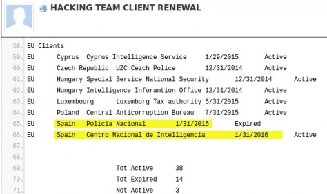 L'empresa Hacking Team, que ha treballat per als serveis d'intel·ligència de diversos governs a més de l'espanyol (Rússia, l'Aràbia Saudita, el Casaquistan i Sudan), va fer factures al govern espanyol per valor de més de 3,4 milions d'euros, segons les primeres informacions analitzades.